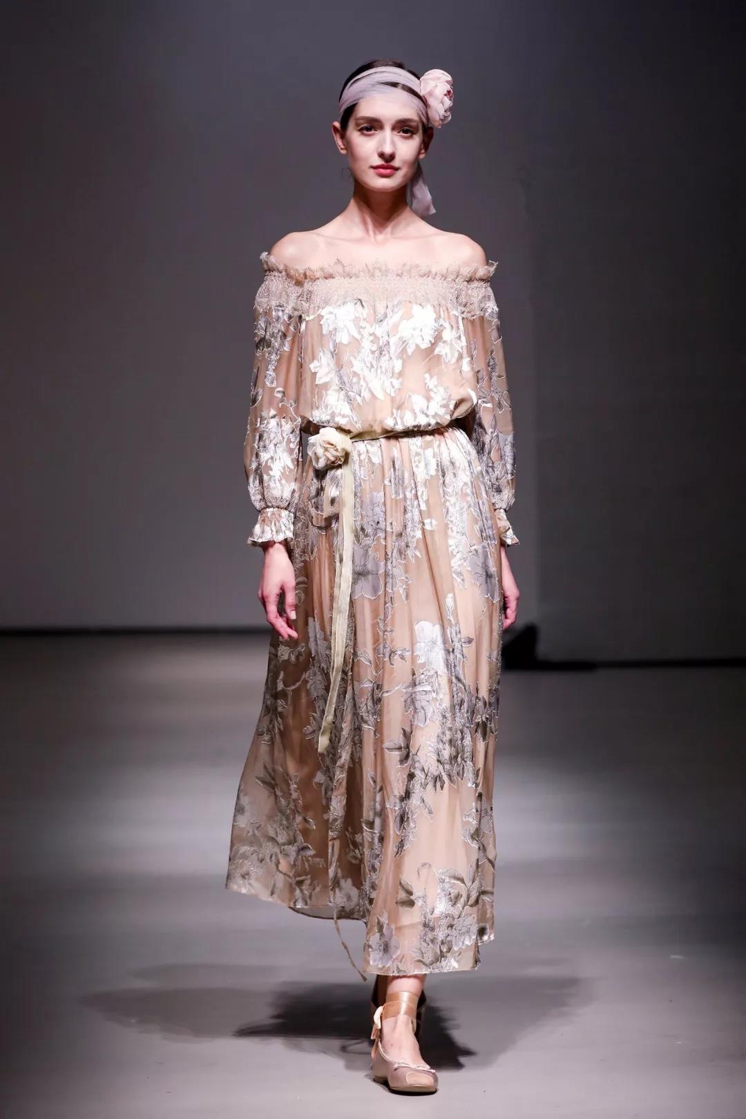 浪漫馥郁的原创花型在矜贵精致的面料上慢慢起舞,无须耀眼的灯光,自然和煦的色彩是它的至美舞池,舞姿曼妙,倩影娉婷。刺绣,扎绒,钉珠,贴花等重手工的匠心表达,突出了女性优雅高贵的独特气质。复古蕾丝在当代立体剪裁下散发出新的魅力,大衣搭配叠透纱裙,为厚重的秋冬,带来久违的飘逸轻灵。